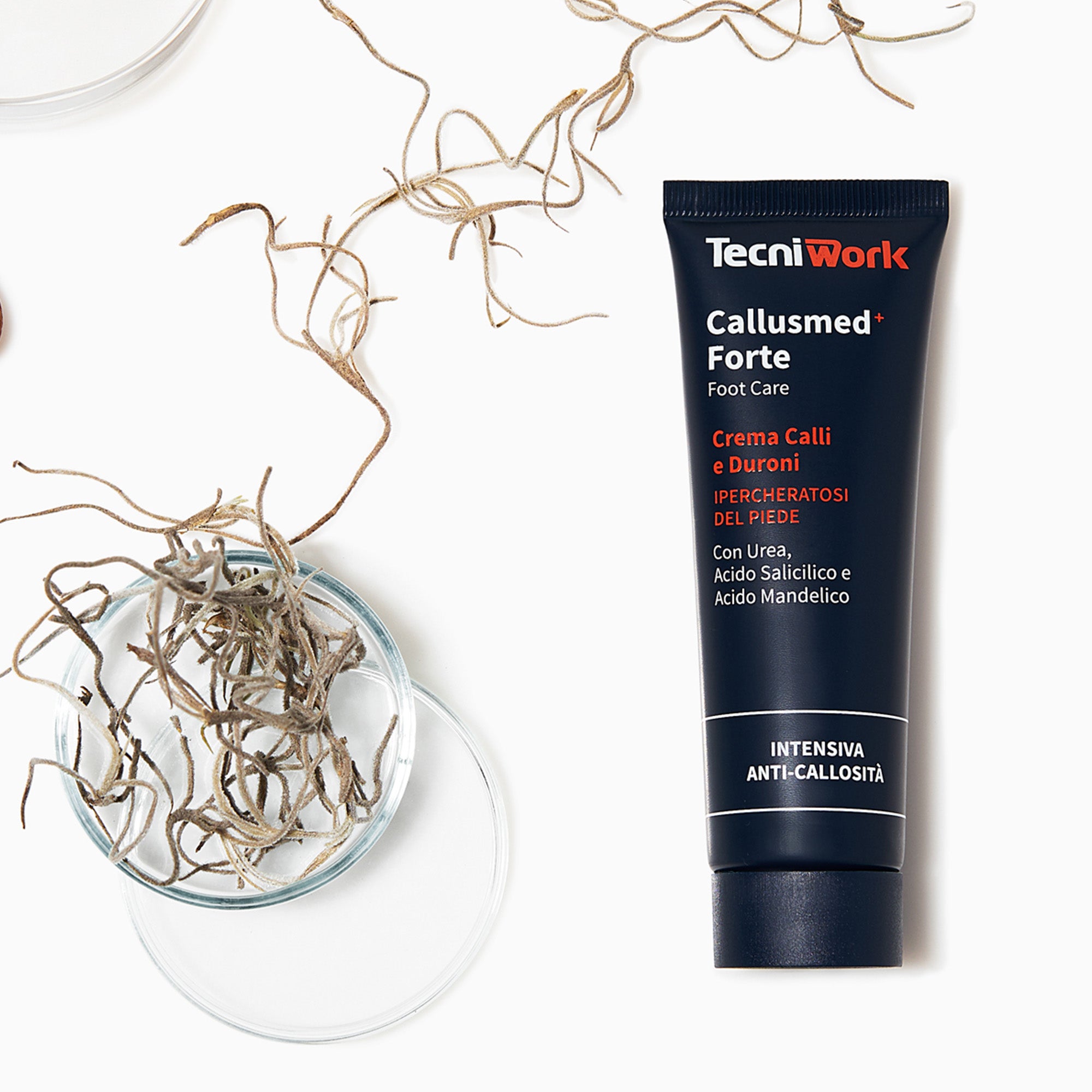 Com alta concentração de queratolíticos naturais , como ácido salicílico, ácido mandélico, ureia e alantoína, para combater e remover eficazmente calosidades, calos e espessamentos em calcanhares, solas e dedos.