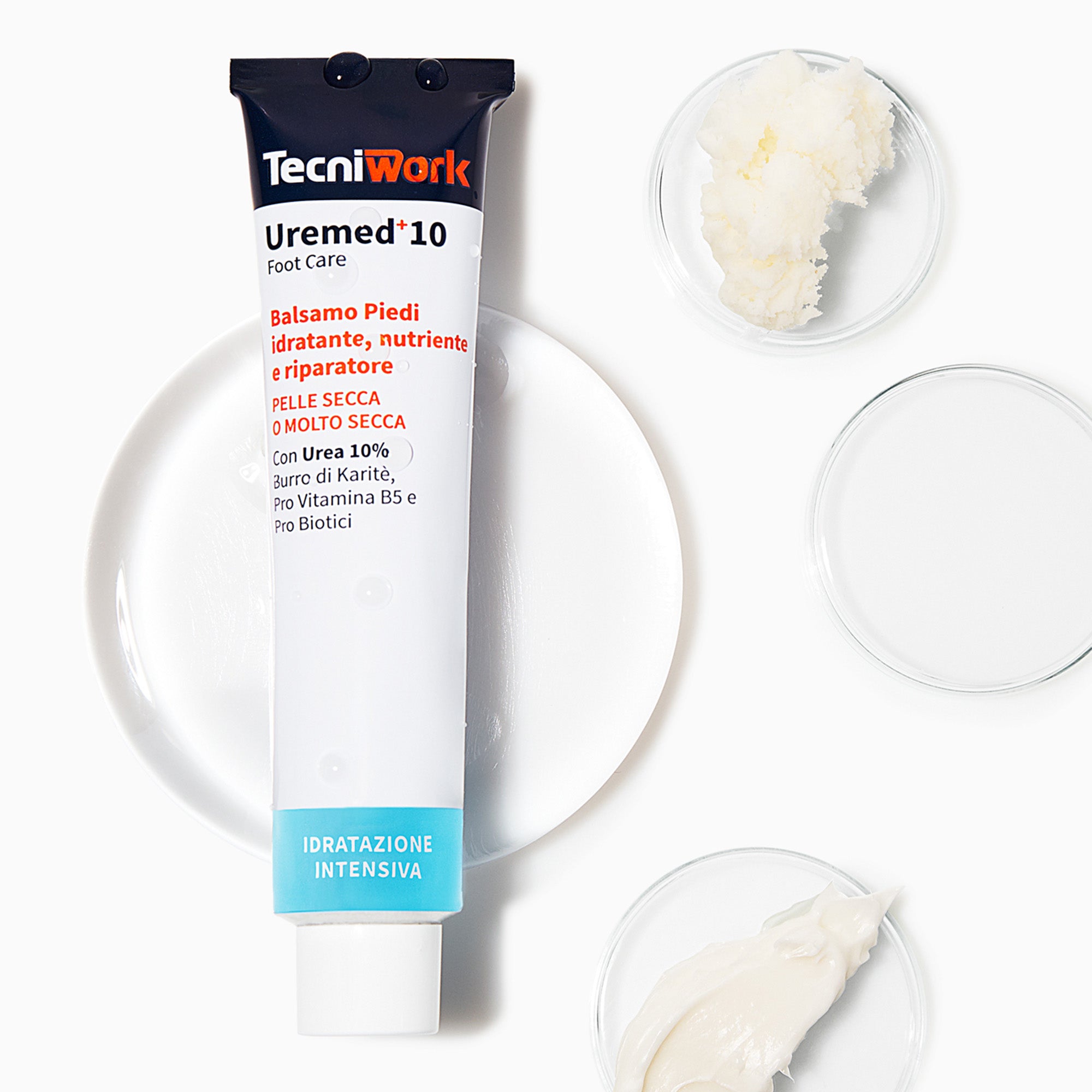 Com 10% de Ureia para um alto grau de hidratação, Manteiga de Karité, Pró-Vitamina B5 e Probióticos para nutrir, reparar e reequilibrar o mecanismo de defesa natural da barreira cutânea.