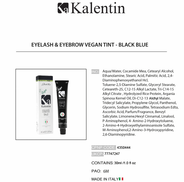 Tinta para pestanas e sobrancelhas sem  PPD e Resorcinol  (lei dos EUA)