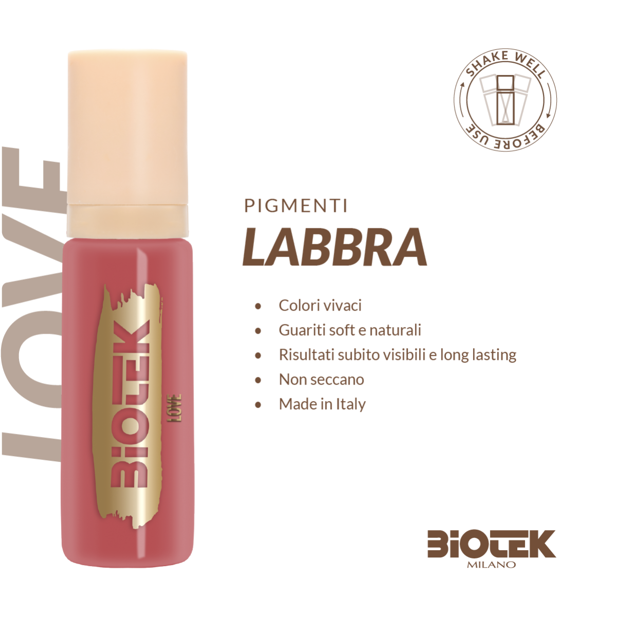 A cor Love da BIOTEK, graças à sua textura rica e cremosa, pode ser usada tanto para maquilhagem permanente quanto para microblading. Todos os pigmentos BIOTEK estão disponíveis nos formatos de 15ml.